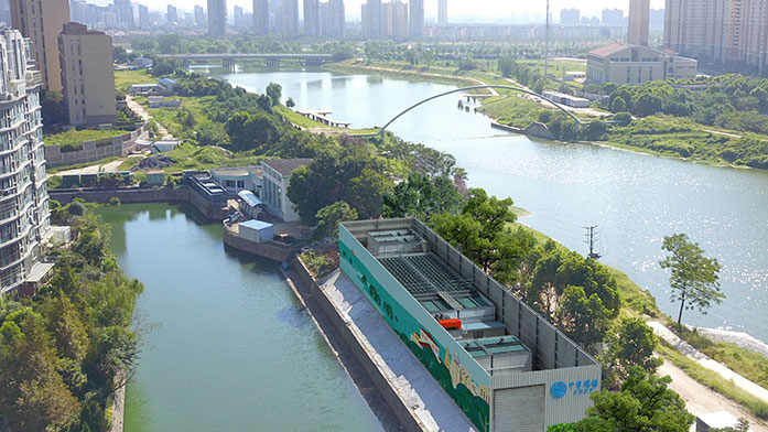 治理措施:采用“源頭截污、就地凈化、集散結(jié)合、清水回補”的思路,采用自主研發(fā)的 “懸浮床” 及“三相增強”生物膜反應(yīng)器等核心技術(shù),運用污水模塊化裝置(CBS),在河道、泵站前池、污水匯集區(qū)域就近設(shè)置,為城市內(nèi)河、流域斷面水質(zhì)達(dá)標(biāo)提供保障。